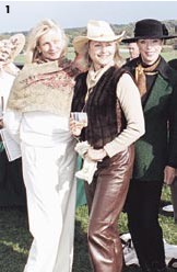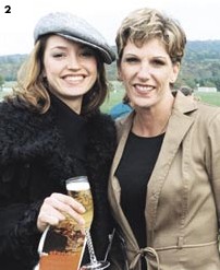 Deborah Yarbogh, Nancy Mains, Dianne O’Connell McCombs | Steeplechase Thrills Gone were the sundresses and fancy wide-brimmed strawhats of this summer's Virginia Gold Cup. In their place,guests sporting elegant tweeds, suede and leather gatheredon Member's Hill and railside for tailgating parties at the65th International Gold Cup at Great Meadow in ThePlains, Virginia. Although the sun was missing for muchof the festivities on October 19, it didn't dim the spirits ofthe crowd who came to view the steeplechase event, oneof the most prestigious timber races in the country, withpurses totaling over $100,000. |  Sara Doxtator and Dana Thurston |