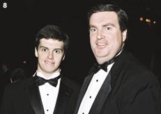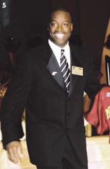 | The Greatest Guests entering the reception area of the Redskins' 70th Anniversary Gala were met bythe Hogettes, but a much more rousing welcome from the Redskinettes greeted all 1200 revelersas they descended into a sea of burgundy and gold for dinner in the ballroom. Spotted werefootball greats and fans Joe Theismann, Sonny Jurgensen, Art Monk, Bobby Mitchell, DarrellGreen, Monte Coleman, Joe Washington, former head coach Joe Gibbs, Virginia SenatorGeorge Allen (son of Hall of Fame coach George Allen), and Jim Kimsey, but veryfew current players, who were resting up for Sunday's game. Gary Clark and Ken Houston(two of the 70 Greatest Redskins) were delayed at the airport, causing them to arrive at theMarriott Wardman Park Hotel about three hours late, wearing sweatshirts and jeans, optingto leave their luggage and tuxes at the airport for the sake of time. They received hugeovations when introduced by Emcee Trey Wingo of ESPN, about 45 minutes after the rest of the70 Greatest had been introduced. The $750 ticket price included entertainment from Arliss actorRobert Wuhl, an impressive laser light show, and an inspiring NFL Redskins highlight filmfilled with tackles and touchdowns from the last 70 years. 1.5 million was raised for theteam's Leadership Council Youth Development Program. |  Redskins cornerback Darrell Green