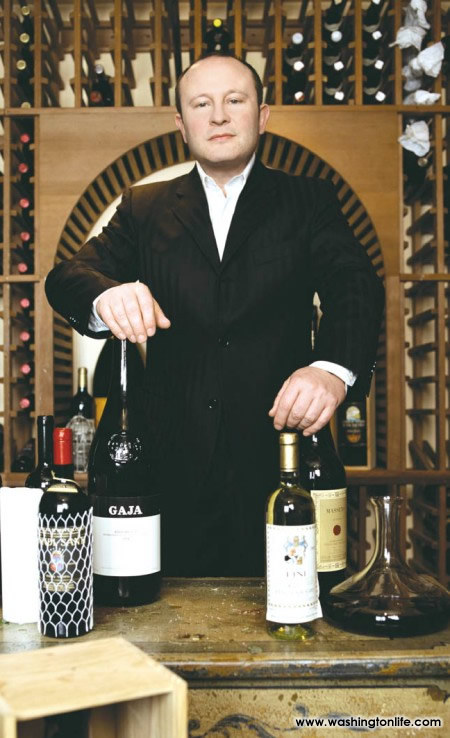 Franco Nuschese photographed in the wine room at Café Milano wearing Dolce and Gabanna. |