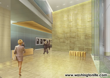 | A rendering of the lobby of Hickok Cole Architects' 1050 K, which is going after Gold LEED certification |