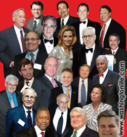 | From top to bottom, left to right: Peter Barris, Ted Leonsis, Joe Robert, Thomas Hale Boggs Jr., Walter Isaacson, Bob Woodward, Placido Domingo, Katherine Bradley, David Rubenstein, Tom Friedman, Newt Gingrich, George Stephanopoulos, David Bradley, Terry McAuliff e, Tim Russert, Vernon Jordan, Frank Fahrenkophf Jr., Bob Johnson, Dan Glickman, P. Wesley Foster, Jr. Debra Lee and Steve Case |