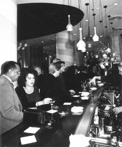 | Teatro Goldoni Opening Party | Taking Center Stage Chef Fabrizio Aielli's new restaurant, Teatro Goldoni, arrived at 1909 K Street in downtown Washingtonwith an exuberant party, filling both the rooms and the bar with fine-food lovers. Outside, klieg lightssoared and music trumpeted. Inside, Fabrizio and his culinary staff prepared gourmet Venetian worldcuisine in the open kitchen—and what a performance it was. The interior decor, cleverly designed by theteam of Olvia Demetriou and Theodore Adamstein, is equally dramatic with spacious, elevated booths, awall of opera masks, a theatrical mural, and colorful chandeliers. This restaurant is bound to be anexciting addition to the Washington scene—“break a leg!