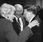 Corrine Michel, Rep. Bob Michel and John Sununu at Roy Pfautch’s holiday dinner party, |