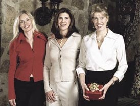 Jill Sorensen Robert is wearing a Valentino jacket and YSL pumps from SaksJandel. Allison Bernstein Shulman is wearing sweater, pants, and pumps fromMax Mara, jewelry by Michelle du Pont. Michelle du Pont is wearing VictorCosta blouse and Vera Wang shoes from Saks Fifth Avenue, and jewelry byMichelle du Pont. |