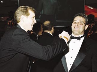 | Gentlemen Take Your Corners Fight Night, the macho smoker packed a punch. Boxing luminaries Jake "Raging Bull"LaMotta, former heavyweight champions Evander Holyfield and "Smokin' Joe" Frazier,Sugar Ray Leonard, Ken Norton, Leon Spinks, Earnie Shavers and Carmen Basilio werejoined at the Hilton Washington and Towers on November 7 by composer Quincy Jones, basketballsuperstar Michael Jordan, former pro football player and politicianJack Kemp, and local moguls Raul Fernandez, Roger Mody, andJack Davies. Musical entertainment was provided by rock n' rolllegend Chuck Berry. Fight Night, founded by Joseph E. Robert, Jr.,benefits the Fight for Children organization, which has raised over$53 million in the past twelve years to aid area youth.  “The Raging Bull” Jake LaMotta |