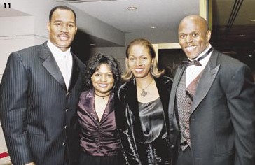 | The Greatest Guests entering the reception area of the Redskins' 70th Anniversary Gala were met bythe Hogettes, but a much more rousing welcome from the Redskinettes greeted all 1200 revelersas they descended into a sea of burgundy and gold for dinner in the ballroom. Spotted werefootball greats and fans Joe Theismann, Sonny Jurgensen, Art Monk, Bobby Mitchell, DarrellGreen, Monte Coleman, Joe Washington, former head coach Joe Gibbs, Virginia SenatorGeorge Allen (son of Hall of Fame coach George Allen), and Jim Kimsey, but veryfew current players, who were resting up for Sunday's game. Gary Clark and Ken Houston(two of the 70 Greatest Redskins) were delayed at the airport, causing them to arrive at theMarriott Wardman Park Hotel about three hours late, wearing sweatshirts and jeans, optingto leave their luggage and tuxes at the airport for the sake of time. They received hugeovations when introduced by Emcee Trey Wingo of ESPN, about 45 minutes after the rest of the70 Greatest had been introduced. The $750 ticket price included entertainment from Arliss actorRobert Wuhl, an impressive laser light show, and an inspiring NFL Redskins highlight filmfilled with tackles and touchdowns from the last 70 years. 1.5 million was raised for theteam's Leadership Council Youth Development Program. |  Redskins cornerback Darrell Green