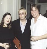 | Gathering No Moss The September 20th opening of "Rolling Stones 40 x 20"at Govinda Gallery attracted more art lovers than couldpossibly squeeze into the Georgetown gallery, forcingrevelry into the streets as visitors sipped white wine from littleplastic cups. The title of the exhibit (also a newly releasedbook edited by Govinda Gallery owner Chris Murray andWashington Post writer Richard Harrington), is a referenceto the 40 years the Rolling Stones have been together andthe 20 photographers whose work is featured in the book.The opening coincided with the launch of the Stones'smuch anticipated 2002/2003 world tour, presumed to betheir last. A posh affair followed the exhibit opening at theEmbassy Row home of Robert Lehrman, where the eclecticgathering of guests roamed around admiring Lehrman'scelebrated contemporary art work which crowded everywall, table and bookcase.  Gered Mankowitz with his album cover |  Gus Coral & Carol Hull
