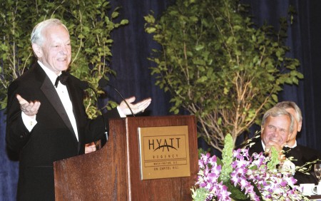 | A Well Done Roast A "Who's Who" of journalists that included CBS's Bob Schieffer and Bill Plante, NBC'sAndrea Mitchell and Tim Russert, Time magazine's Margaret Carlson, CNN's Mark Shieldsand Wolf Blitzer, and humorist Art Buchwald came out for the grilling of Tom Brokaw at theCapitol Hill Hyatt Regency on October 2. The annual event features prominent Washingtonpoliticians roasting members of the press. Brokaw's good-natured grillers included SenateMajority Leader Tom Daschle, Sen. George Allen, Rep. Nancy Pelosi, Art Buchwald andBob Schieffer. Proceeds will be used to aid in the prevention of Spina Bifida. |