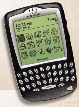 The new BlackBerry 6750: Dubbed the “crackberry” because owning one is highlyaddictive, this new model gives you the added flexibility of placing and receivingphone calls with its integrated speaker and microphone. So the next time youare put on hold while trying to make reservations or buy tickets, you cansimply pop on the speakerphone and put the phone down. Better yet, youcan plug in your headset and keep browsing the Internet. It also includesa thumb-operated trackwheel, easy-to-read screen, backlit keyboard,intuitive menu-driven interface and quick access to email, dual-bandphone, organizer, web applications, and SMS (that’s Short Messaging Service, thefeature that allows you to send text messages to other Blackberries and mostcell phones). All this technology has been packed into a tiny 5 oz. devicethat has made huge fans of Capitol Hill types and rap stars everywhere.www.blackberry.com |