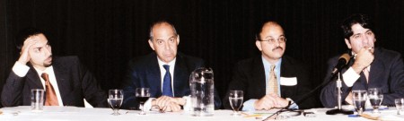 | It’s the American Way In an unprecedented collaboration bet ween Iranian-American Jews, Christians,Moslems, and Zoroastrians (including both Democrats and Republicans,)a group of D.C. and N.Y. attorneys has launched the first national Iranian-American Bar Association (IABA), and recently hosted a reception for afew hundred at the Arts Club of Washington, D.C. to kick off their UnityCampaign.The IABA is an independent, non-religious, not-for-profit, dedicated toeducating Iranian-Americans about legal developments affecting them, andencouraging their participation in the civic life of the United States. Theevening focused on the mechanics of civic participation as well as currentlypending legislation that could effectively ban the entry of students, tourists andimmigrants from Iran into the U.S.  Hassan Nemazi and Faramarz Farshehi |  Michael Etessami Nazeemi Dehn