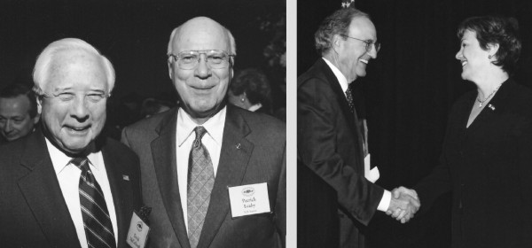 From left: David McCullough & Sen. Patrick Leahy; Sen. George Mitchellpresenting Sheila Copps, Min. of Canadian Heritage with World Park Leadership Award. |