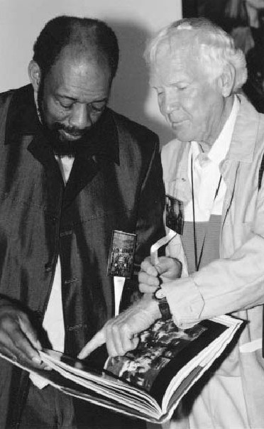 Above: Painter Sherman Watkins and civil rights photographer CharlesMoore view their works in the companion book to the exhibit. |