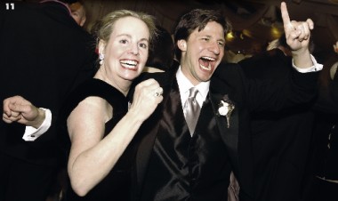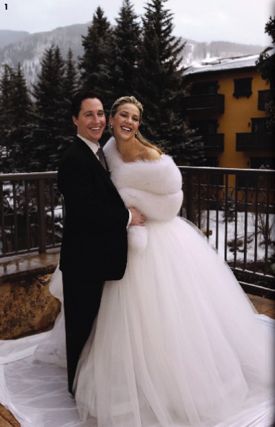 Even the snow sparkling in the moonlight on Vail Mountain was nomatch for the glow of candlelight, the gleam of crystal and silver, andthe radiance of the bride dressed head-to-toe in a luminous confection of white tulle.The ballroom in the Lodge at Vail, Colorado was the scene of the Valentine Weekend weddingof Emily Brownyn Harrison of Washington, D.C. and Brian Christopher Sullivan of Los Angeles.The bride's parents, News 4 anchor Barbara Harrison and husband JohnPyles, welcomed guests from across the country for the weekend ofevents set in the ski resort where the bride and groom became engaged onValentine's Day last year. The celebrations began on Thursday night with two cocktail parties. One for the over-thirty crowdwas given by Jo Ann and John Mason and Hilda and Arturo Brillembourgat the Brillembourgs’ home in Vail. The younger crowd gathered earlierand stayed later at a party given by the siblings of the bride and groom at the Lodge. Friday, Valentine’s Day, guests were free to ski until evening. Athalf past six, they gathered at the gondola for the ride to the top ofVail Mountain, where the groom’s parents, Gail and Jim Ellis ofSan Marino, California, invited everyone to join them for dinnerand an evening of toasting as well as roasting. On Saturday, the wedding night’s event began with the ceremony atthe Vail Chapel, officiated by Father Lawrence Madden of GeorgetownUniversity. The bride’s attendants included her sisters, and friendsfrom both Stone Ridge School in Bethesda and Dartmouth College.Among the ushers were the groom’s brothers and classmates from PhillipsAcademy Andover and Northwestern University. | There were junior bridesmaids and flower girls too, and like theolder attendants, their dresses were in shades of creamy white. The flowerswere white roses with acorns and oak leaves. The oak-leaf motif wasborrowed from the groom's company logo, Rolling Oaks Capital, and wasfeatured on the invitations and gifts for the wedding party and guests. The bride's gown was designed for Neiman-Marcus by BadgleyMishka and was made of beaded silk with a skirt of over 100 yards of silktulle. The veil was finished with a hemstitch of beads and crystals. Sandi Hoffman of Gala Events in Bethesda created the ambiancefor the reception. The ballroom of the Lodge at Vail was decoratedwith over 6,000 white roses, some in simple crystal bowls, othersintricately wound around silver candelabra. The flowers weredesigned by Steven Chambers of Victoria Gardens in Washingtonassisted by Denver floral designer Nancy Barney. The wedding cake was designed by the bride's aunt, Beth Setrakian,of "Beth's Babies" cookie fame, and baked by the Lodge pastry chef. Itconsisted of five layers of chocolate raspberry mousse with a butter creamfrosting, adorned with 400 Godiva chocolate hearts. The weekend festivities concluded with an apres-ski gathering onSunday, hosted by Robert and Mary Galvin of Chicago, grandparentsof the groom. The newlyweds then left for Hawaii for a two-week honeymoon, while many of the guests were snowed-out ofWashington by the big Presidents' Day snowstorm. |