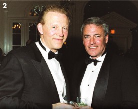 | Singles Making Merry The women keep getting younger, andthe men, well they keep getting youngerwomen to enjoy their company at the annualBachelors and Spinsters Ball. Three hundredguests came out for the spring rite of passagefor elite singles at the City Tavern Club inGeorgetown on April 5. In keeping withtradition, the ball was chaired by Chris vanRoijen (as he has for the past 28 years); thisyear John Cecchi served on the committee.And, in keeping with tradition, guests wereexpected to be in black-tie attire. Dressingdown prompted a much-publicized dressingdown by ball chair van Roijen.  Caroline Elting |  Laura Traq, Tom Snedeker & Cristal Cipriani Beverly Cenname