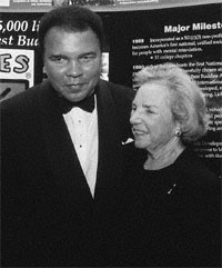| Friends Worth Fighting For Muhammad Ali, the man who some deem “athlete of thecentury” was honored at this year’s Best Buddies Ball. The11th annual event was held at Ethel Kennedy’s NorthernVirginia estate, where nephew and Best Buddies founderAnthony Shriver played host to over 900 guests, includingleading figures from the sports and entertainment fields,celebrities—including actors Fred Savage and TomArnold—government officials, famous artists, and majorphilanthropists. Guests were greeted at the door by Euniceand Sargent Shriver before being escorted to the side lawn,where they enjoyed entertainment, dinner, and dancing.Beneath two huge tents, guests feasted on a dinner at tablesadorned with miniature boxing rings made of white roses.Pat O’Brien and Nancy O’Dell, hosts of the television program“Access Hollywood,” served asMasters of Ceremonies, while thePointer Sisters provided lively entertainment.The evening also featured alive auction, where four gloves autographedby Ali sold for $5,000 each.The event raised over $750,000 forBest Buddies, which is dedicated toenhancing the lives of people withmental retardation by providing opportunitiesfor socialization and employment. Ball Chairs: Lynn Leonsis, and Raul Fernandez Auction Co-Chairs: Eunice KennedyShriver, Carole Dell, and Michelle Stevens Location: Hickory Hill,”the home ofMrs. Robert F. Kennedy.