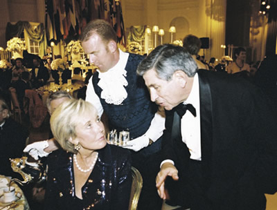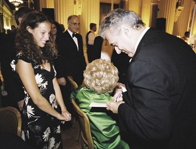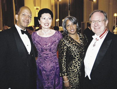 After the opening night performance of the Strauss operetta "Die Fledermaus," over 400 guests, including Justices Stephen Breyer, Ruth Bader Ginsburg, and Anthony Kennedy (all of whom appeared in the performance in celebrity cameos), gathered at the OAS for a gala. Other guests included the First Lady of Austria, Margot Klestil-Loeffler (in a stunning purple gown); D.C. Mayor Anthony Williams and his wife Diane; Deputy Defense Secretary Paul Wolfowitz; new British ambassador Sir David Manning and his wife Lady Manning; French Ambassador Jean-David Levitte; Russian Ambassador Yuriy Ushakov; and the ambassadors of Brazil, Spain, Italy, Denmark, Finland, Austria, and the Netherlands. Opera chairman Betty Casey generously underwrote the production and the gala.