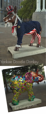 elephants and donkeys, symbols of the Democratic and Republican parties,