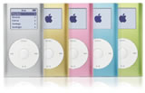 Smaller and lighter than most cell phones, the new mini iPod holds up to