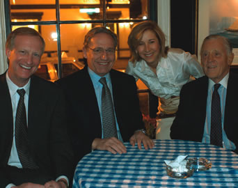 Nathans 35th Anniversary Party Over 200 guests packed the dining room and bar of Nathans in Georgetown to celebrate the restaurant's 35th anniversary. Over a three-course dinner, Bob Woodward and Ben Bradlee answered questions in a “community lunch” style format. Proprietor, Carol Joynt began these very popular “community lunches” in the fall of 2001 following the September 11 terrorist attacks. The goal was for members of the community to get together, address their fears, and get questions and concerns answered. Over the last two years, topics have branched out into many different areas and guests have included Tom Brokaw, Lloyd Grove, Dr. Tina Alster and Jack Valenti. Paying tribute to its beginnings, Nathans served an Italian meal while guests enjoyed a performance by jazz/blues singer Judith Owen, accompanied on bass by her husband, comedian Harry Shearer, star of “The Simpsons” and the recent film, “A Mighty Wind.” The evening ended with champagne, birthday cake, and no word yet of who “Deep Throat” is.
