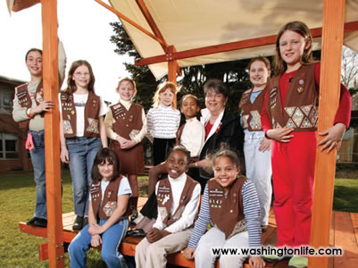 Jan Verhage The Washington area will consume 4,055,000 boxes of Girl Scout cookies this year, more than any other metropolitan region in the country. This statistic mirrors the success that Jan Verhage enjoys as executive director of the Girl Scout Council of the Nation's Capitol. Her motto speaks for itself:“When I think of all the girls we're not serving, I know there's always more to do.” Verhage, a former Girl Scout herself, began working for the Girl Scouts in California after she finished college. In November 1985, she moved to Washington and soon breathed new life into the organization by doubling the enrollment numbers in the metropolitan area, over 71,000 members in over 3,900 troops. Verhage creates unique programs to promote the well-being of girls. One of them began as a one-week camp and then expanded to Camp CEO, where teenage girls and women executives network, share s'mores, songs and stories about succeeding in the corporate environment. Participants have included TV anchorwoman Kathleen Matthews, Howard University executive Artis Hampshire-Collan and prominent lawyer Natalie Ludaway. Verhage has focused on reaching underserved populations. She devotes much of her $9.6 million budget to creating programs that build selfesteem, combat peer pressure, and promote literacy. She also began a program called, “Bridging the Gap,” which tutors girls in math and sciences. For the 90th anniversary of the Girl Scouts, Verhage arranged a songfest on the Mall for 120,000 girls, the largest gathering of Girl Scouts in America. Verhage is the founder and current chairman of the Nonprofit Roundtable of Greater Washington, where she is working to build a unified coalition of Washington non-profit groups. This organization coordinated the efforts of Washington non-profits in response to 9/11, and also completed a landmark study with Johns Hopkins University illustrating how the non-profit sector has had a positive economic impact on this region. Jan Verhage also serves on the D.C. Campaign Leadership Task Force on Religion and Public Values, which focuses on reducing teen pregnancy. She is a the former president of the International Children's Alliance, and serves on the advisory board of the Center for the Study of Voluntary Organizations at Georgetown University.“I love what I do, because I can take the time to not only help the Girl Scouts but also the broader community,” Verhage says. It's clear that she has no intention of slowing down. Jan Verhage is wearing Ellen Tracy pants, jacket and shirt and a Prada brooch, available at Saks Fifth Avenue, Chevy Chase. Hair by Toka salon.