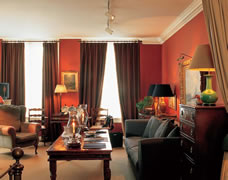 : Seven One Seven is not a full service hotel, but there are always one or two staff members on hand to serve a drink and an amuse bouche, make a restaurant reservation, mail packages or let you in after a late night. The three sitting rooms feature wall-to-wall bookshelves, fireplaces, ornately carved wooden chairs with crushed velvet upholstery, large gold leaf mirrors, brass chandeliers, antiques and an abundance of knick-knacks from around the world. There are only eight rooms in this upscale guest house. All rooms are unique, spacious and decorated more simply than the public spaces with large easy chairs and hand-made brass beds. Each of the rooms is inspired by an artist, musician or writer (Picasso, Liszt and Shakespeare) and features their work in some capacity. Some rooms have marble fireplaces, others have patios overlooking the Rijksmuseum canal, and most have large bathrooms, but a couple only have showers. The least expensive room, the Mahler Room, is separated from the main building and is accessed through the hotel's private courtyard garden, which it overlooks. The room feels like a cozy Nantucket cottage with large French windows. Breakfast is included in your room rate and can be served in your room, the downstairs lounge, or in the serenity of the courtyard. Prices range from $400 to $900 a night. Hotel Seven One Seven; Prinsengracht 717, NL-1017 JW Amsterdam. Phone +31 (20) 4270717, www.717hotel.nl, info@717hotel.nl.