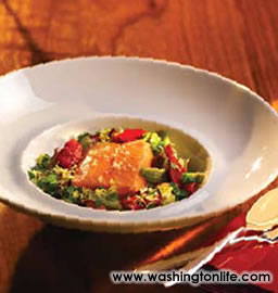 After reading the many glowing reviews of Cityzen at the Mandarin Oriental it's hard not to wonder whether D.C. really has food this meticulously crafted and quite frankly exciting as many proclaim star chef Eric Ziebold's works to be. They are much closer to art than simply a meal. There is no disappointment. An evening at Cityzen is euphoria for any gourmet and lobbyists, journalists, politicians and businessmen now recognize it to be one of the power spots for a dinner that is almost unparalleled in Washington. Ziebold's menu is an aggressive tour of modern American cuisine infused with five core elements: wood, fire, earth, metal and water. The result yields a luscious lychee lime sorbet blended with Ketel One vodka that is sweet enough to go down smoothly, but with enough zing to awaken your mouth. The cappuccino inspired chestnut soup has a bold surprising bite to with it's intense smoky flavor, yet the creamy foam makes it silky and light.