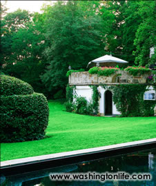 Sited on 3.5 acres with lush gardens and a swimming pool, the 1904 home has the atmosphere of a villa in the Tuscan countryside. "It's in the middle of Washington but it doesn't feel like Washington," he says. That is, until you look out the window where views of the U.S. Capitol and other familiar landmarks on the skyline are clearly visible in the distance.