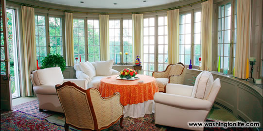 Looking up at the rounded bay at the back of the house, Nuschese notes with an impish grin that the architecture of his abode makes his high-powered guests feel important. "It's the same shape as the [south portico of the] White House."