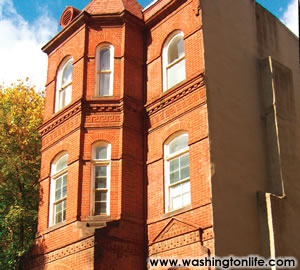 This new listing is one of just two remaining houses located in the George Washington University Foggy Bottom neighborhood. On the market for the first time in over half a century, it is a rare opportunity to own a unique Victorian-style home with ornate Greek key design brickwork, a Grecian doorframe frieze, wrought iron rails, Palladium windows, a turret and a red tile roof. Surrounded by campus amenities, this stately residence currently used as office space for an association is convenient to GW Hospital, the Kennedy Center and the State Department.