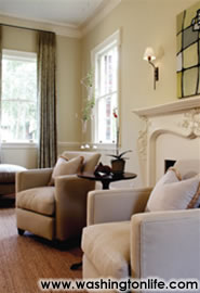 Referrals often come from the Georgetown furniture store Hollis and Knight, where Ireland has helped with buying and displaying furniture. That's how Vickie Burns, vice president of news at the local NBC affiliate, ended up hiring the young designer to remodel her two-bedroom townhouse off Massachusetts Avenue NW in Wesley Heights. "Before we bought a single pillow, he helped me redesign the kitchen and lay out the floors," Burns says. Simple but effective changes, like relocating the refrigerator and extending crown molding to unify the kitchen, she explains, won her admiration for the designer's practical approach.