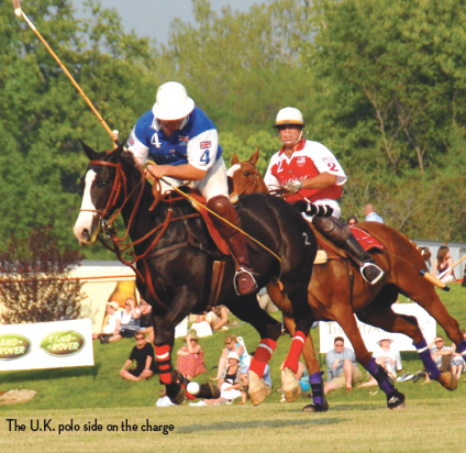 U.K. took the inaugural six chukker polo contest 7-3 from the