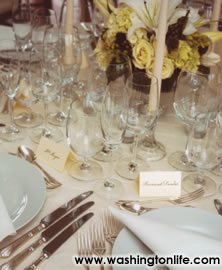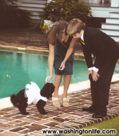 Nearly 400 guests left St. Matthew's Cathedral and arrived at The Galleria at Lafayette Centre for the reception. There, they were treated to personal videos of congratulations from the likes of Tim McGraw, Faith Hill, Andrea Bocelli and Frankie Valli - all on a 20- foot screen. Congratulatory notes from some 60-odd celebrities, including John Travolta, Al Pacino, Sophia Loren, Jay Leno, Jon Bon Jovi, Angelica Huston, Susan Sarandon, Susan Lucci and Celine Dion were bound in a special book, which was presented to the couple by Elizabeth's father, John Salamone, executive director of the National Italian American Foundation (NIAF) and my longtime friend. You know you are at a big wedding when retired secret service agents man the gift table. The bride was beautiful in her elegant Lazaro gown, Kate Spade shoes and Vera Wang jewelry. While the 50-foot skylight atrium and Italian marble at The Galleria were hard to improve upon, Hargroves enhanced the décor with silk drapery and special lighting to provide the atmosphere for an enchanting evening. Sidney's Orchestra kept the party going until the wee hours.