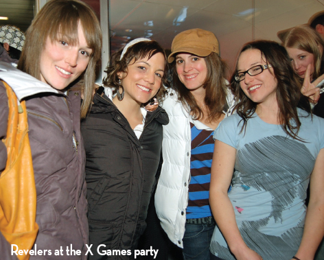 jacket) and Ashley Taylor (sparkling in a gold sequin Tory Burch