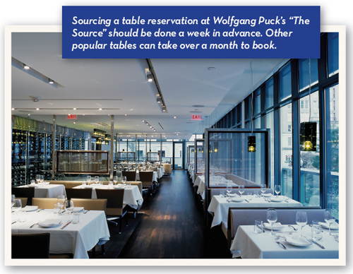 within the month,” says general manager Brian Zaslavsky, “we fill a lot of seats from the cancellation list.” THE SOURCE: “We serve the dining room menu in the downstairs bar, where we don’t take reservations,” says executive chef Scott Drewno. Alternatively, visit the restaurant during its new lunch hours. CITYZEN:Perch at the bar, where a reduced menu of three courses is offered for $50. “If we have any lastminute cancellations, we’ll seat you,” says general manager Mark Politzer. KOMI:“Be flexible with the hours you want to come in,” says Derek M. Brown, general manager and sommelier at Komi. He recommends the shoulder hours of 5:30 p.m. to 6:00 p.m. or 9 p.m. to 9:30. p.m. “It’s outside of the bustle, I think it’s almost more enjoyable.” CITRONELLE:“Always try a walkin,” says Mel Davis, public relations coordinator, and former maitre d’hotel at the restaurant. There’s also an upstairs lounge, which serves an abbreviated menu – and there’s no dress code! RESTAURANT EVE:“Mondays are great days; it’s quiet and good for a romantic dinner. The staff can really pay close attention to you,” says Evan Zimmerman, sommelier. A “no reservation policy” at the bar means walk-ins can enjoy the full bistro menu. |