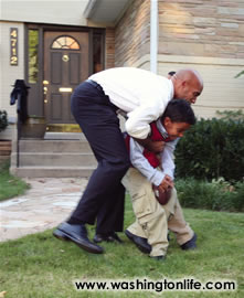 It was love at first sight, the mayor concedes — a bit reluctantly. (Possibly out of some understandable need to separate the personal from his newly minted public self.) They married in February 1997 and settled into a home in the Crestwood section near Rock Creek Park where they still live. Michelle Fenty is the “household manager,” the talented renovator and decorator whose taste reflects her sophisticated background. Of Jamaican heritage, she grew up in London and New York, where she moved with her parents at age 18. Mr. Fenty, by contrast, is a “local boy” from Mount Pleasant. His mother is of Italian descent; his father was an artist. The family business today is the specialty running shoe store Fleet Feet in Adams Morgan.