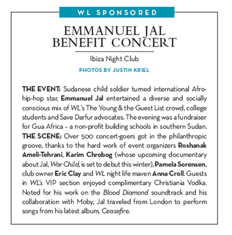 Emmanuel Jal performing songs from his latest album “CeaseFire.” Karim Chrobog and Roshanak Ameli-Tehrani Emmanuel Jal