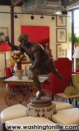| Deborah Gore Dean’s fine 18th century STATUE OF HIPPOMINE holds court amid a gallery of fabulous furnishings and accessories. Gore Dean, (202) 625-9199 3338 M Street, NW. |