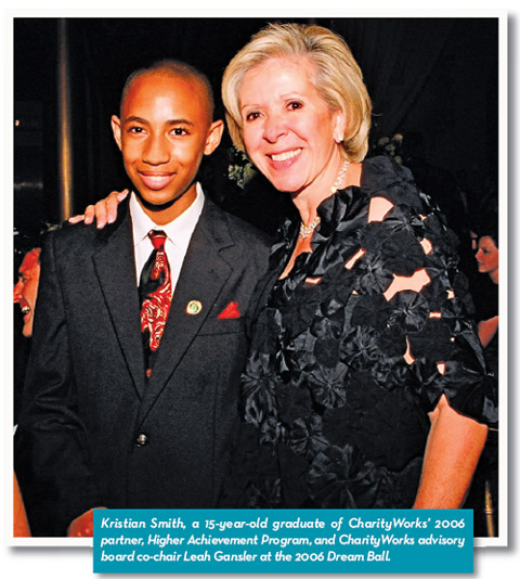 This year, under the banner of the theme SOARING, the CharityWorks Dream Ball will be held on September 29 at the National Building Museum. The primary benefi ciary (“Partner” in CharityWorks’ lexicon) of this year’s event will be Center City Consortium, an organization comprised of 12 elementary and middle schools located in some of the most under-resourced areas of the city. Proceeds from this black-tie affair and those from other CharityWorks events in 2007 are expected to net in excess of $1.5 million to benefi t the Consortium, several other area programs and a new CharityWorks Grant Program. This year, CharityWorks expects to exceed the funds raised in any previous year. The annual 100 Point Vintage Wine Tasting event in May netted over $600,000. The much-anticipated Dream Ball is expected to SOAR to new heights and reach the $1 million mark.