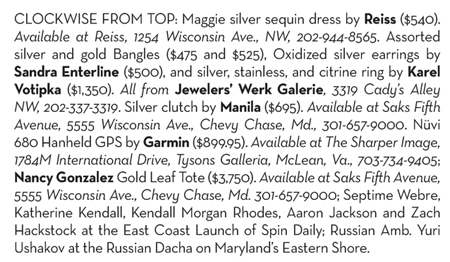 NANCY GONZALES HANDBAGS.........61 TREND REPORT Light & Airy....................62 WL FASHION Jet Set Style........................63 TREND REPORT Plaid & Floral....................69 FASHION FOR PAWS................70 EAST COAST LAUNCH OF SPIN DAILY.....72 Shoshanna Trunk Show................74